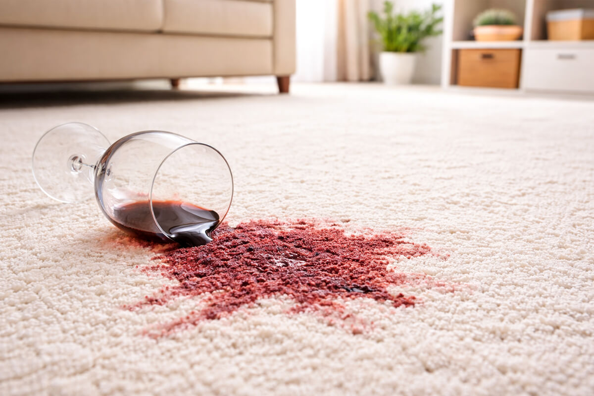 The acidity of red wine accelerates this bonding process. As the liquid dries, oxidation darkens the stain further. On white carpet, even small amounts of pigment create a noticeable mark. Heat from the room, sunlight or foot traffic can make the stain set faster and penetrate deeper into the carpet backing.